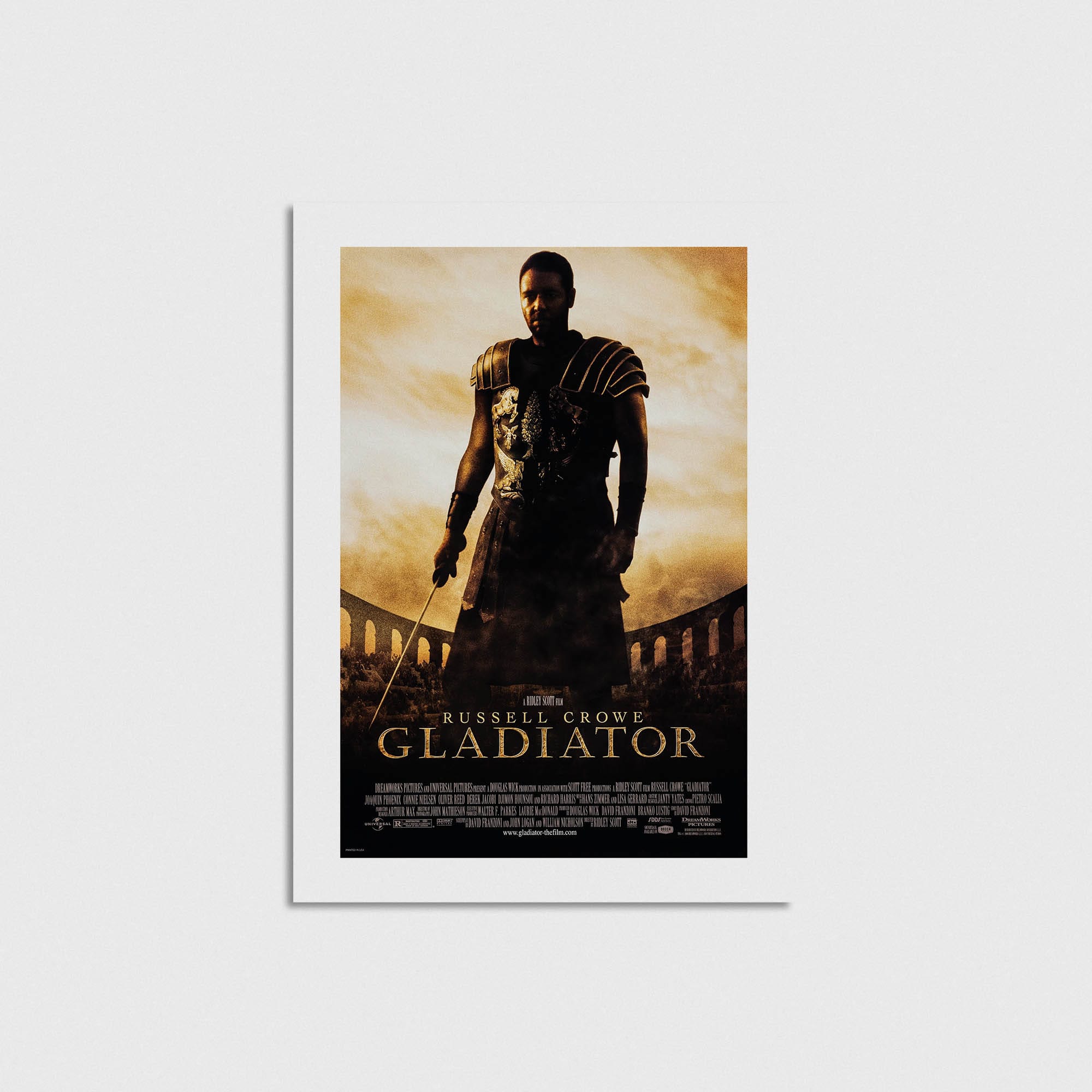 Ridley Scott’ın yönettiği Gladiator (2000), ihanet, intikam ve onur temalarını epik bir anlatımla işleyen unutulmaz bir tarihsel dramdır. Roma İmparatorluğu’nun gücünü ve acımasızlığını arka plana alan film, ailesini kaybeden general Maximus’un kölelikten arenaların efsanevi gladyatörüne uzanan destansı yolculuğunu konu alır. Russell Crowe’un Oscar ödüllü performansına Joaquin Phoenix, Connie Nielsen, Oliver Reed ve Richard Harris eşlik eder. Görkemli savaş sahneleri, etkileyici müzikleri ve güçlü dramatik yapısıyla sinema tarihine damga vuran bu yapım, epik ruhunu yansıtan çarpıcı bir film posteri için zamansız ve güçlü bir anlatı sunar.
