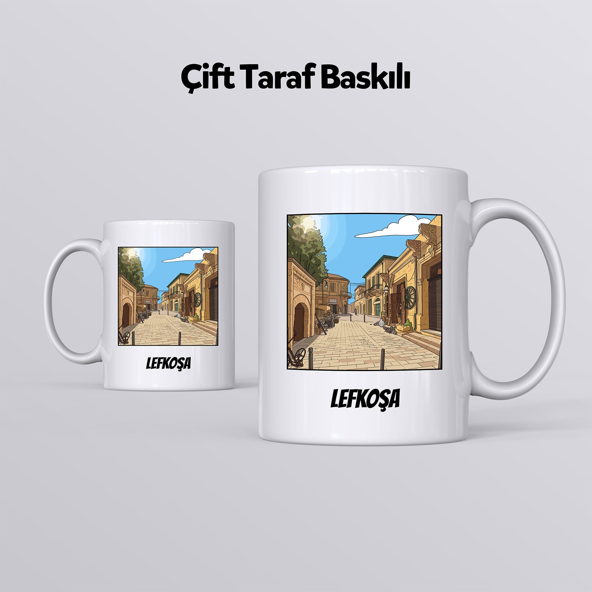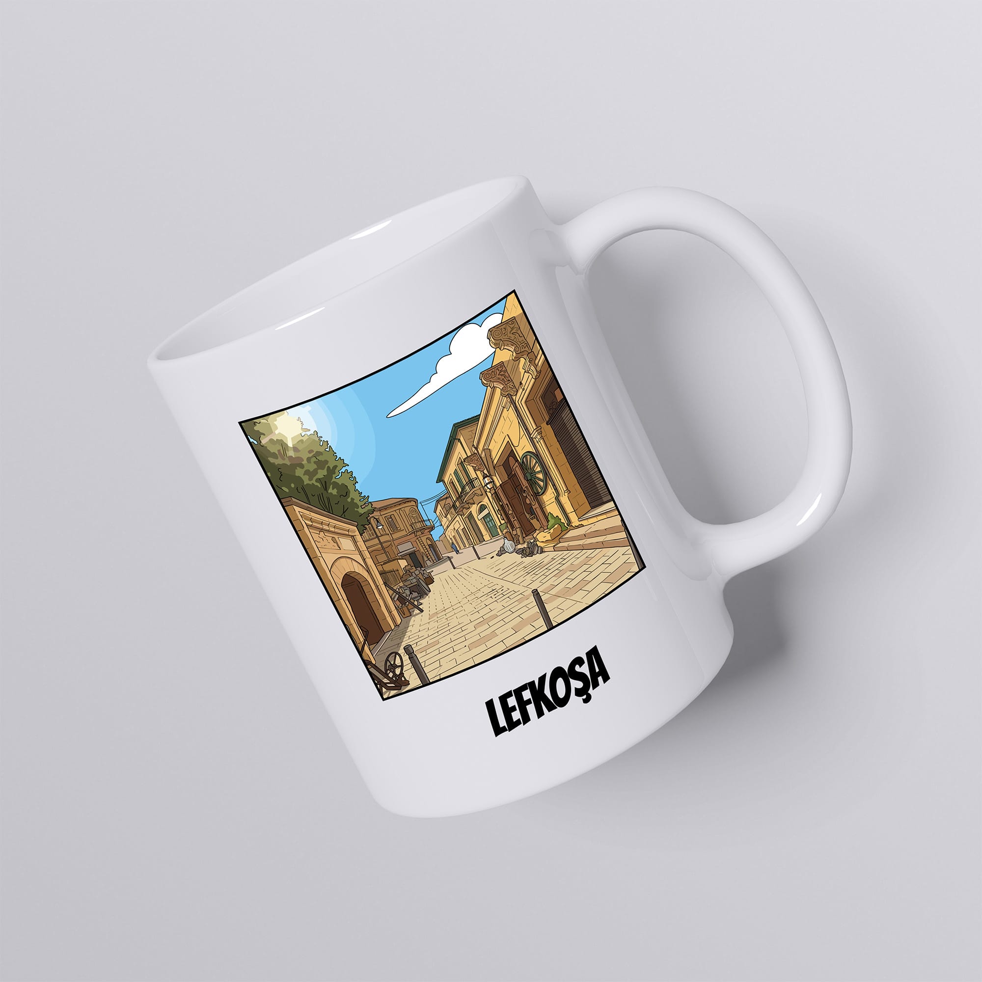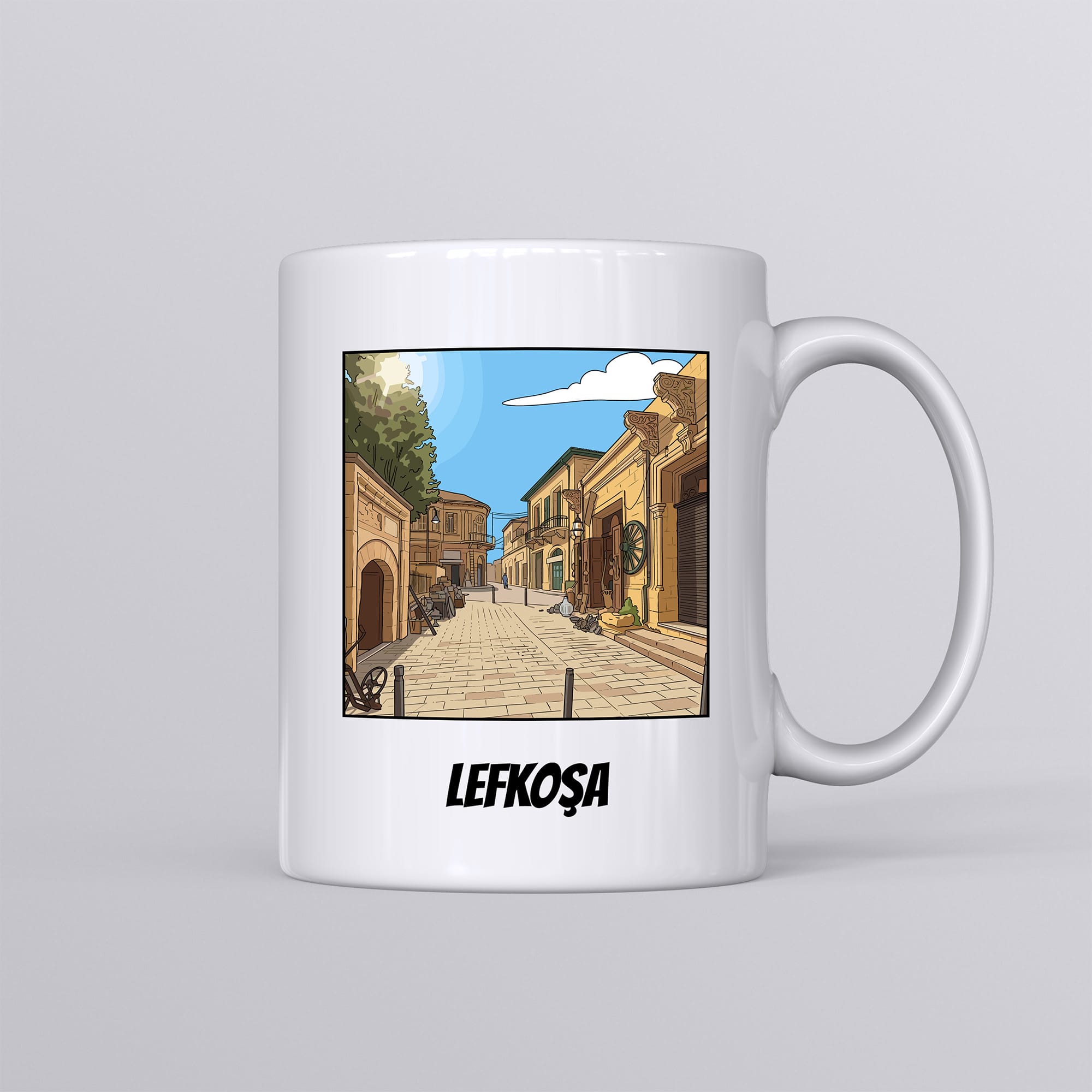 Bu zarif kupa, Lefkoşa’daki bir sokağı naif bir şekilde betimliyor. Silindir formundaki klasik seramik kupa bardak modelimiz, beyaz zemini sayesinde baskının detaylarını net ve canlı şekilde yansıtır. Sıcak ve soğuğa dayanıklıdır.
