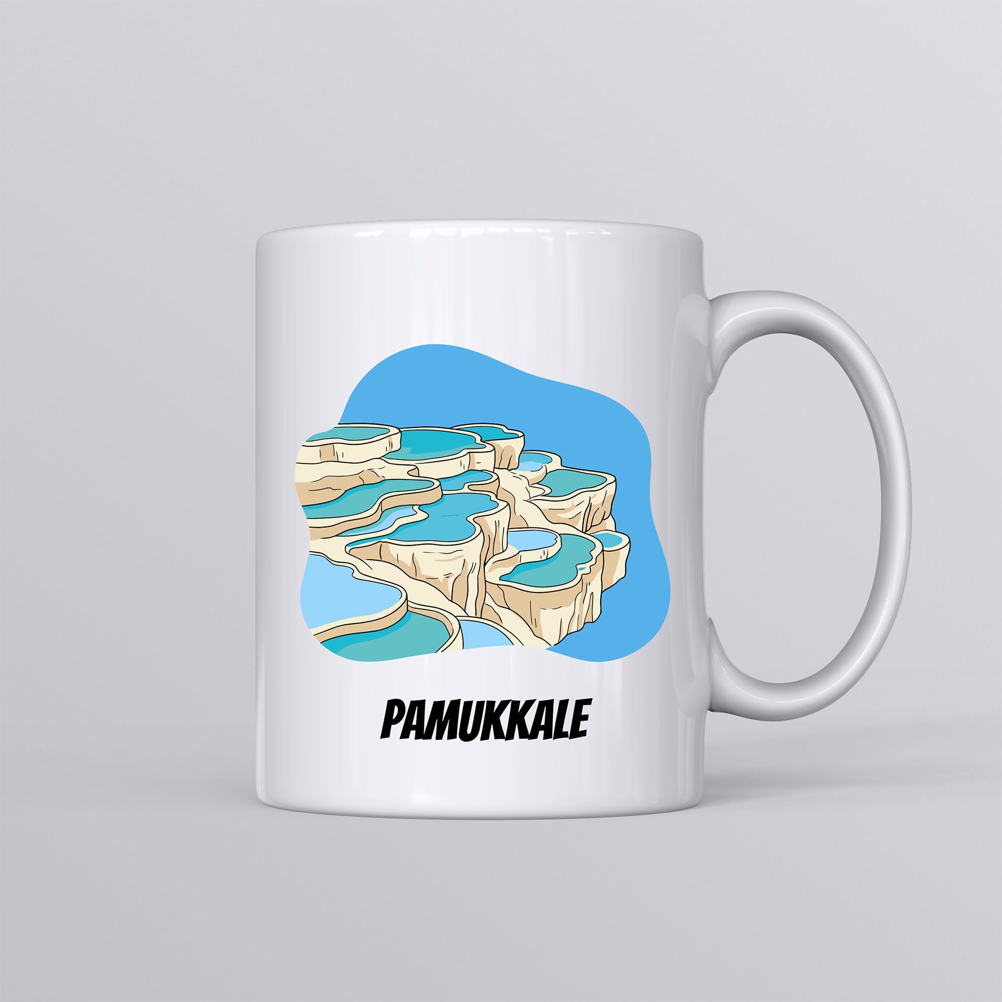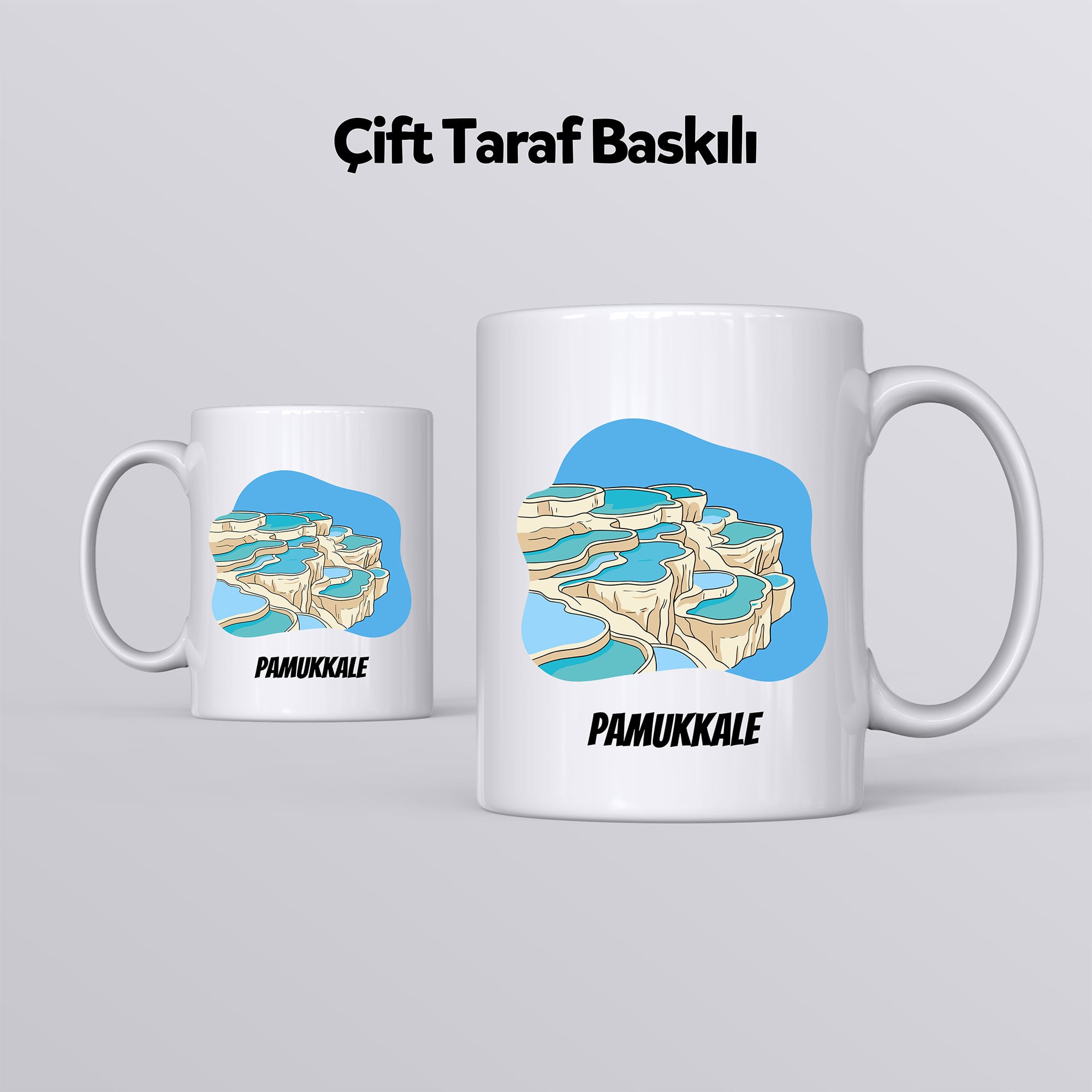 Bu zarif kupa, Pamukkale’yi naif bir şekilde betimliyor. Silindir formundaki klasik seramik kupa bardak modelimiz, beyaz zemini sayesinde baskının detaylarını net ve canlı şekilde yansıtır. Sıcak ve soğuğa dayanıklıdır.