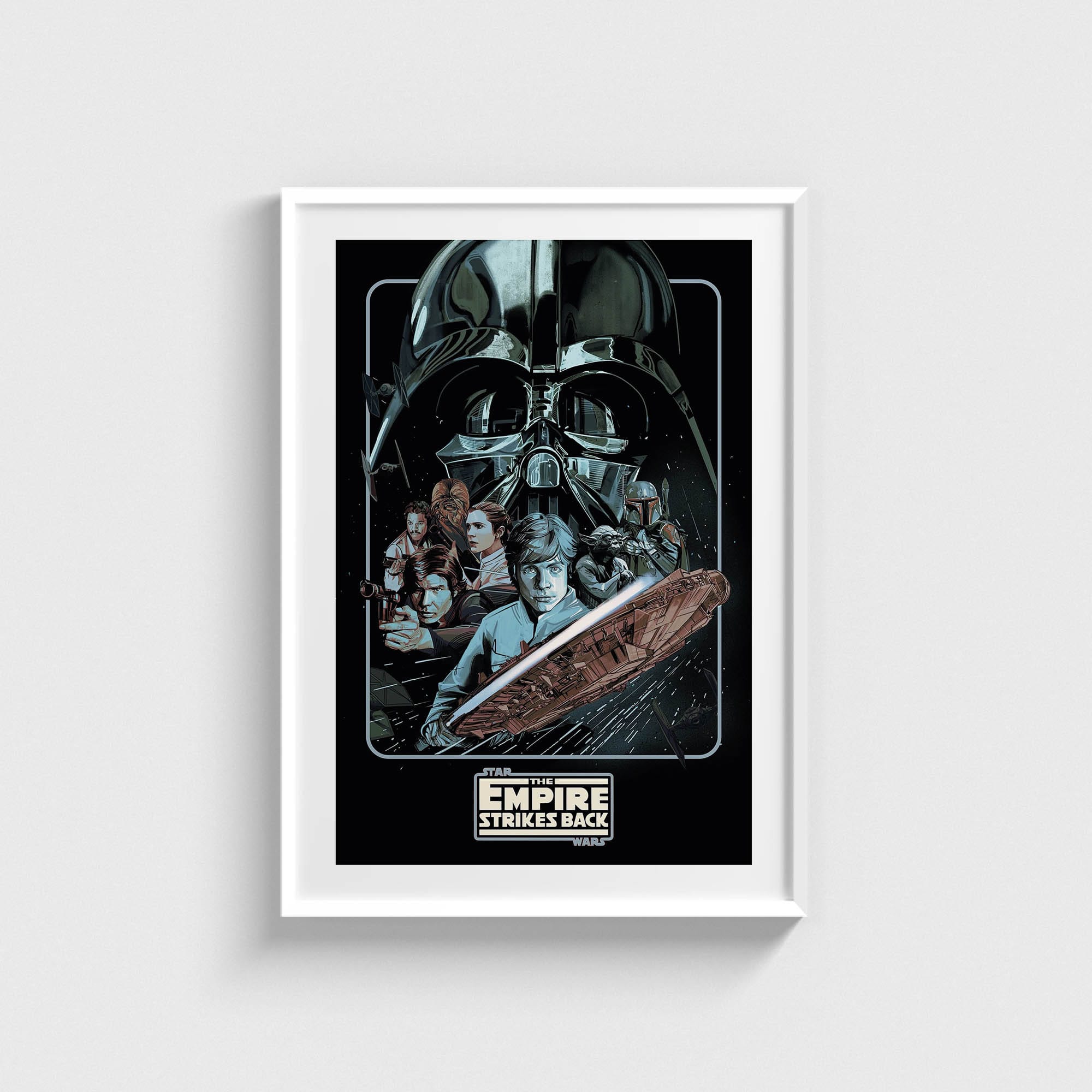 Irvin Kershner’ın yönettiği Star Wars: The Empire Strikes Back (1980), Star Wars serisinin en karanlık ve epik bölümlerinden biri olarak, dramatik gerilim, karakter gelişimi ve destansı çatışmalarla öne çıkar. Luke Skywalker, Yoda’dan Jedi eğitimi alırken, Han Solo ve Prenses Leia, İmparatorluk’un ölümcül takibiyle karşı karşıya gelir. Mark Hamill, Harrison Ford ve Carrie Fisher’ın unutulmaz performansları, filmin duygusal yoğunluğunu ve aksiyonunu güçlendirir. İkonik uzay savaşları, sürprizlerle dolu sahneleri ve çarpıcı görsel efektleriyle bu yapım, karanlık, epik ve unutulmaz ruhunu yansıtan bir film posteri için güçlü bir anlatı sunar.